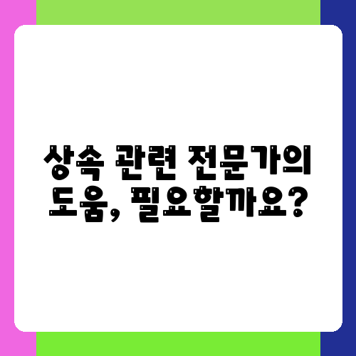 상속 과정은 법률, 세무 등 전문적인 지식이 필요한 복잡한 절차입니다. 때문에 상속 관련 전문가의 도움을 받는 것이 매우 중요합니다. 변호사는 상속 관련 법률 자문을 제공하고, 재산 분할 등의 법적 문제 해결에 도움을 줄 수 있습니다. 세무사는 상속세 신고 및 납부 절차를 안내하고, 절세 방안을 제시할 수 있습니다. 상속 관련 전문가와 상담을 통해 복잡한 절차를 효율적으로 진행하고, 예상치 못한 문제 발생을 방지할 수 있습니다. 전문가의 도움을 받아 안전하고 원활한 상속 절차를 진행하는 것이 좋습니다. 여러분의 상황에 맞는 전문가를 찾아 상담하고, 상속 계획을 수립하는 것을 적극적으로 고려해 보세요.