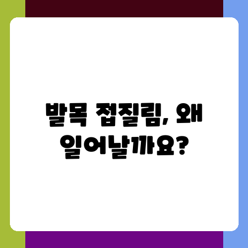 발목을 접질렀을 때, 순간의 통증과 불편함은 정말 힘들죠. 하지만 당황하지 마세요! 빠르고 정확한 응급처치와 꾸준한 관리만으로 발목 통증을 완화하고 회복 속도를 높일 수 있습니다. 이 글에서는 발목 접질림에 대한 응급처치부터 일상생활에서의 관리법까지, 여러분의 발목 건강을 위한 모든 것을 자세히 알려드리겠습니다. 함께 발목 건강을 되찾아보아요!