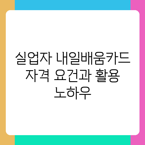 실업으로 힘든 시간을 보내고 계신가요? 새로운 시작을 위한 발판을 마련하고 싶은데 어디서부터 시작해야 할지 막막하신가요? 저는 여러분과 같은 어려움을 겪는 분들을 위해 내일배움카드 제도에 대해 자세히 알려드리고자 합니다. 취업 준비를 위한 교육 훈련을 지원하는 내일배움카드는 새로운 가능성을 열어줄 훌륭한 기회라고 생각해요. 이 글을 통해 내일배움카드 자격 요건과 효과적인 활용 노하우를 배우고, 긍정적인 미래를 설계해 보세요.