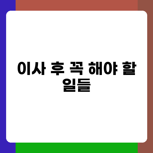 이사 후에는 새로운 주소 변경 등 행정적인 절차를 꼼꼼하게 챙겨야 합니다. 주민등록 이전, 우편물 주소 변경, 은행 계좌 주소 변경 등 잊지 말고 꼭 해야 할 일들이 많습니다. 저는 이사 후 바로 주민센터를 방문해서 주민등록 이전을 했고, 우체국 홈페이지를 통해 우편물 주소 변경 신청을 했습니다. 또한, 사용하는 모든 금융기관에 주소 변경을 알리고, 각종 공과금 고지서 주소 변경도 확인했습니다. 이사 후에는 새로운 환경에 적응하기 위해 노력해야 합니다. 새로운 동네를 탐험하고, 주변 사람들과 인사를 나누며 친목을 다지는 것도 중요합니다. 새로운 시작을 축하하고 앞으로의 삶에 대한 기대감을 갖는 것은 새로운 환경에 적응하는데 도움이 될 것입니다. 새로운 공간에서 행복한 시간을 보낼 수 있도록 노력하면서 새로운 삶에 대한 설렘을 간직하는 것도 잊지 마세요.