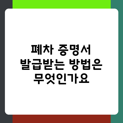 폐차 절차가 완료되면 폐차 증명서를 발급받아야 합니다. 이 증명서는 차량이 완전히 폐차되었다는 것을 증명하는 중요한 서류입니다. 폐차 증명서는 관할 관청이나 폐차 대행 업체를 통해 발급받을 수 있습니다. 폐차 증명서를 받는 데 시간이 걸릴 수 있으니 미리 여유를 두는 것이 좋습니다. 혹시라도 증명서 발급에 문제가 생기면 즉시 관할 관청에 문의하여 해결하는 것이 좋습니다. 증명서 발급이 완료되면 차량등록증을 반납해야 해요. 폐차 증명서와 함께 차량등록증을 안전하게 보관하는 것도 중요합니다. 추후에 필요할 수도 있으니 잊지 마세요.