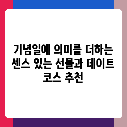 잊지 못할 기념일을 위한 특별한 계획을 세우고 계신가요? 소중한 사람과의 기념일, 단순히 시간을 보내는 것 이상의 의미를 담고 싶은 마음, 누구나 공감할 거예요. 특별한 선물과 잊지 못할 데이트 코스는 기념일을 더욱 빛나게 해주는 마법과 같죠. 이 글에서는 기념일의 의미를 더욱 깊게 해줄 센스 있는 선물과 데이트 코스를 추천해 드립니다. 함께 만들어갈 특별한 추억을 기대하며, 지금 바로 시작해 볼까요?